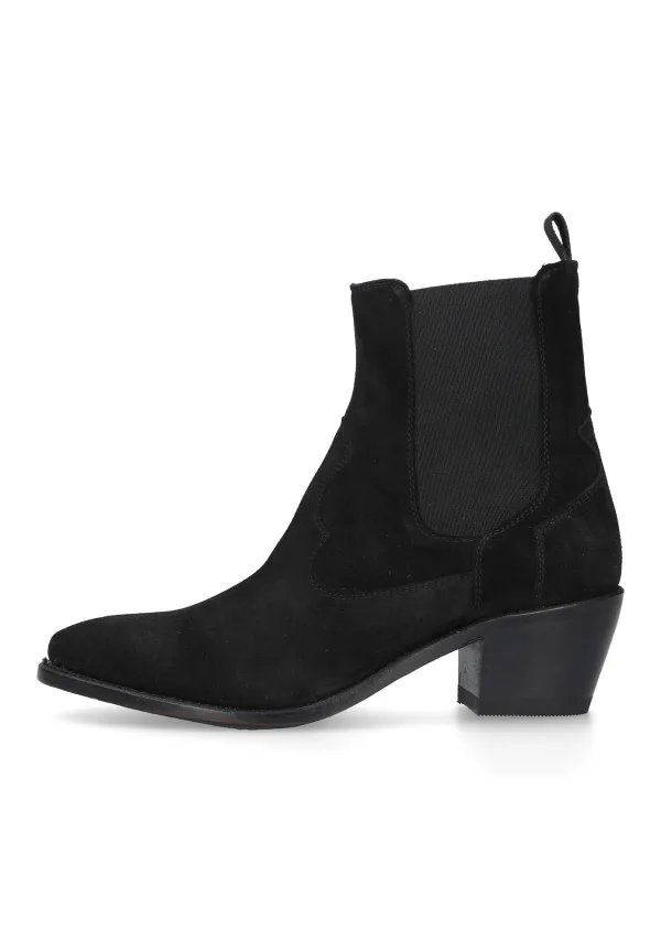De Marla WCB in het zwart is een moderne Western Chelsea boot met een vrouwelijke touch. Gemaakt van hoogwaardig nubuck leer en uitgerust met een elastische rubber inzet, verenigt hij klassieke stijl met alledag geschiktheid. De ronde schoenpunt en de 5 cm hoge hak zorgen voor een harmonieuze silhouette. Van binnen bieden leer en een zachte leren voetbed aangenaam draagcomfort, terwijl de leren zool met rubber inzet voor een veilige grip garandeert. Gemaakt in Italië.