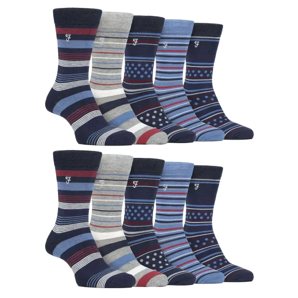 Farah - Heren 10 Paar Multi-Pack Felle Bamboosokken: Stap in een wereld van ongeëvenaard comfort en stijl met de Farah Heren Bamboe Felle Sokken. Verwennen uw voeten met de luxueuze zachtheid van bamboe, terwijl elke stap aanvoelt als lopen op wolken. Dit 10-pakket herensokken is gemaakt van bamboe en biedt een pluizige en zachte aanraking die uw sokkenervaring naar een hoger niveau tilt. De unieke eigenschappen van bamboe gaan verder dan alleen zachtheid - deze sokken regelen van nature de temperatuur, wat zorgt voor warmte in de winter en een koel, ademend gevoel in de zomer. Maak je geen zorgen als de doorbloeding een probleem is! Het zachte gripontwerp van deze sokken draagt bij aan een verbeterde doorbloeding, wat het comfort gedurende de dag bevordert. Druk uw individualiteit uit met meer dan 12 verschillende gevarieerde gestreepte, felle en effen gekleurde patronen. Verkrijgbaar in de herenmaat 6-11 UK, zijn deze sokken met zorg vervaardigd uit 69% Viscose (uit Bamboo), 28% Polyester, 2% Elastodiene en 1% Elastaan voor een combinatie van zachtheid, duurzaamheid en flexibiliteit. Ze zijn machinewasbaar. Extra productdetails: Farah Heren Bamboosokken 10 Paar Waardepakket Super Zachte Bamboe Vochtregulerende Gestreepte & Gekleurde Patronen Hand-Verbonden Teennaden Zacht Zacht Grip Bovenkant Geweldig Voor Doorbloeding Meer dan 12 Stijlopties Heren Één Maat: 6-11 UK Machinewasbaar