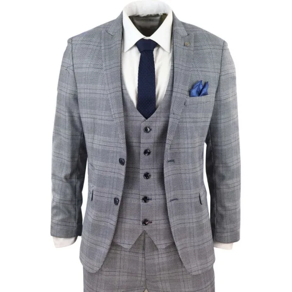 Heren 3-delig grijs birdseye geruit klassiek pak Prijzen