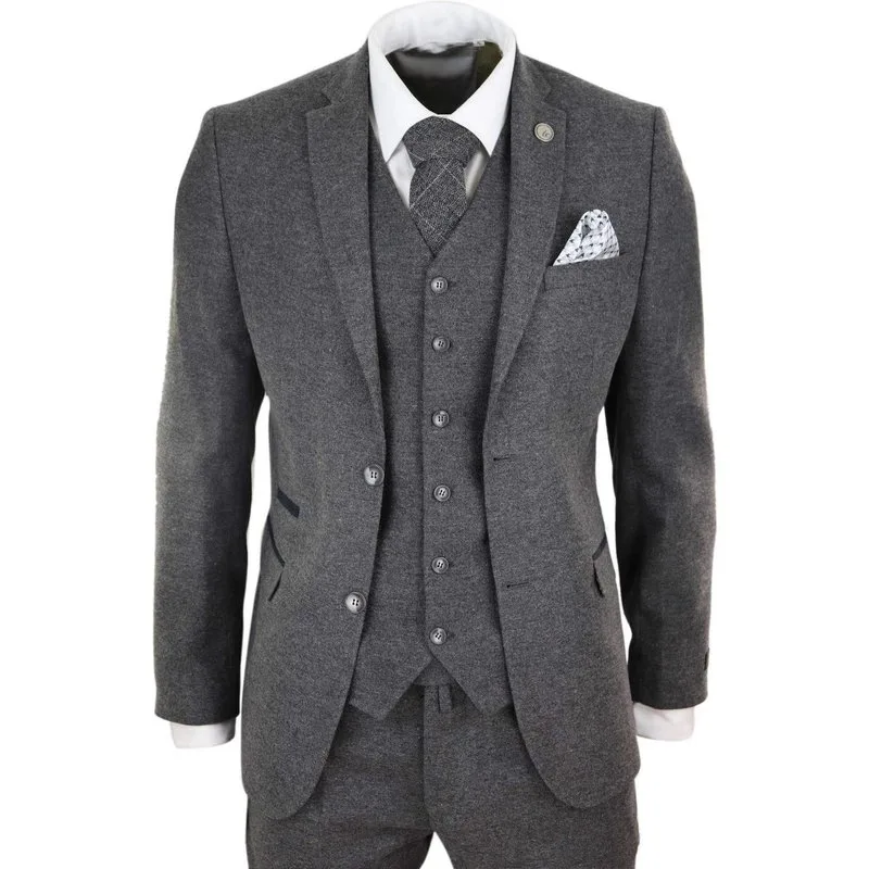 Heren 3-delig Grijs Wol Tweed Vintage Retro Pak Prijzen