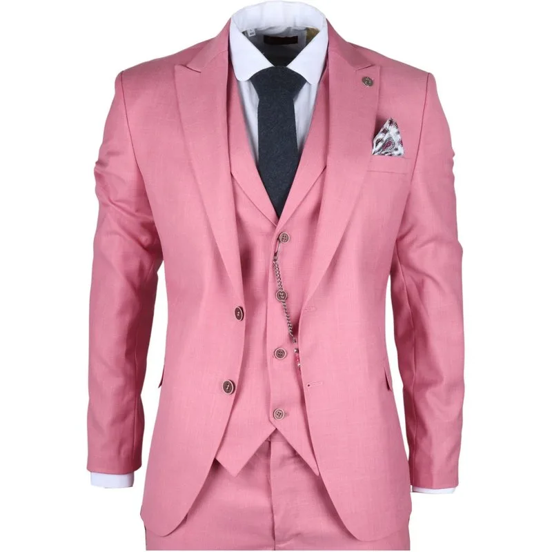 Heren 3-delig Roze Tailored Fit Feestpak Race Day