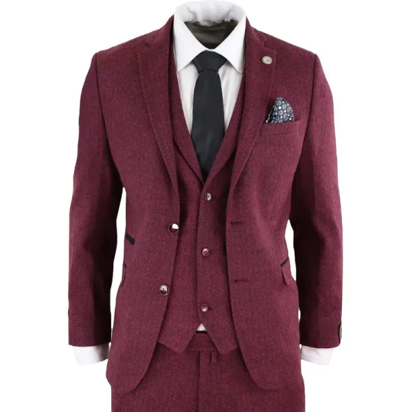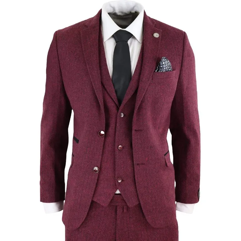 Heren 3-delig wijnvisgraatwol tweed retro pak