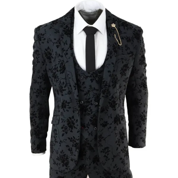 Heren 3-delig zwart paisley fluwelen dinerpak
