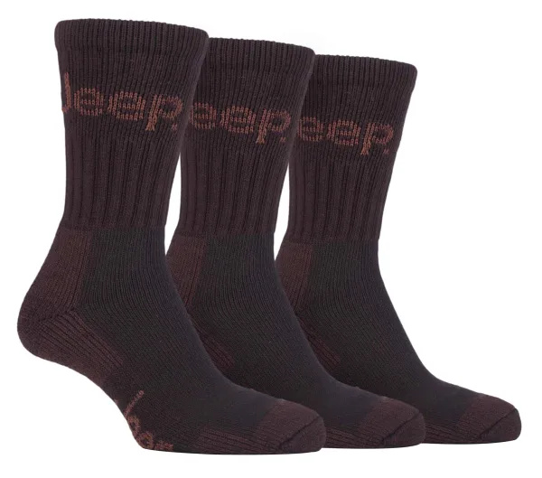 Heren 3 paar Jeep Cushion Sole Hiking werksokken – Bruin Prijzen