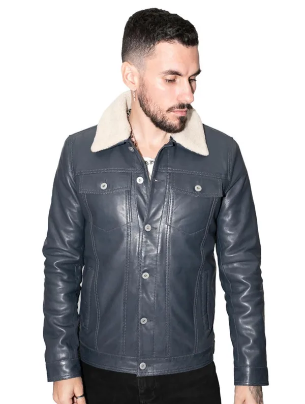 Heren afneembare kraag leren truckerjack-Zagreb