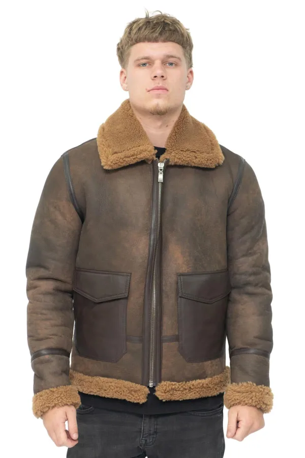 Heren antieke B3 schapenvacht jas-Aviles