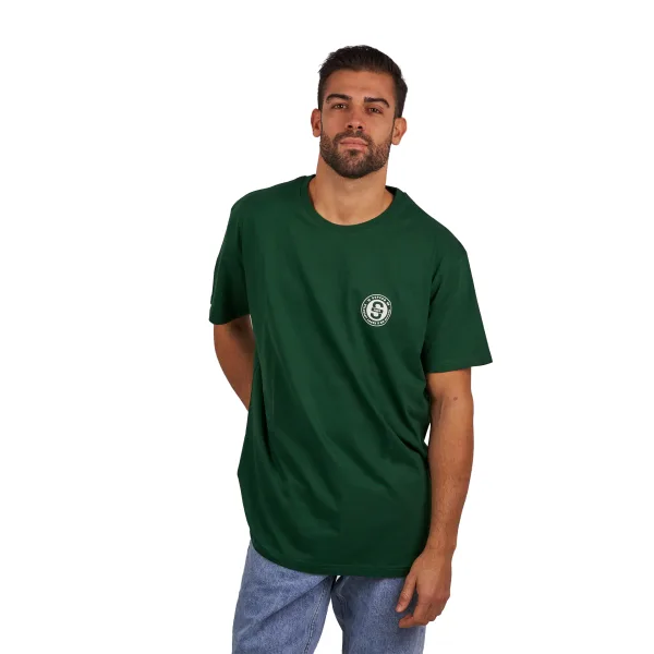 T-shirt met korte mouwen. Ronde hals met geribde afwerking. Merkopdruk op de voorkant. Naden in toon zichtbaar. Samenstelling: 100% organisch katoen Onderhoud: - Wassen op max. 40ºC. - Geen bleekmiddel gebruiken. - Strijken op lage temperatuur. - Niet chemisch reinigen. - Geen droger gebruiken.