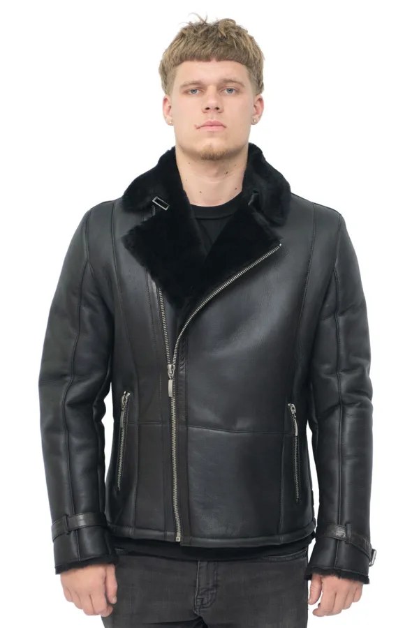 Heren bikerjack met dubbele rij knopen van schapenvacht-Manila