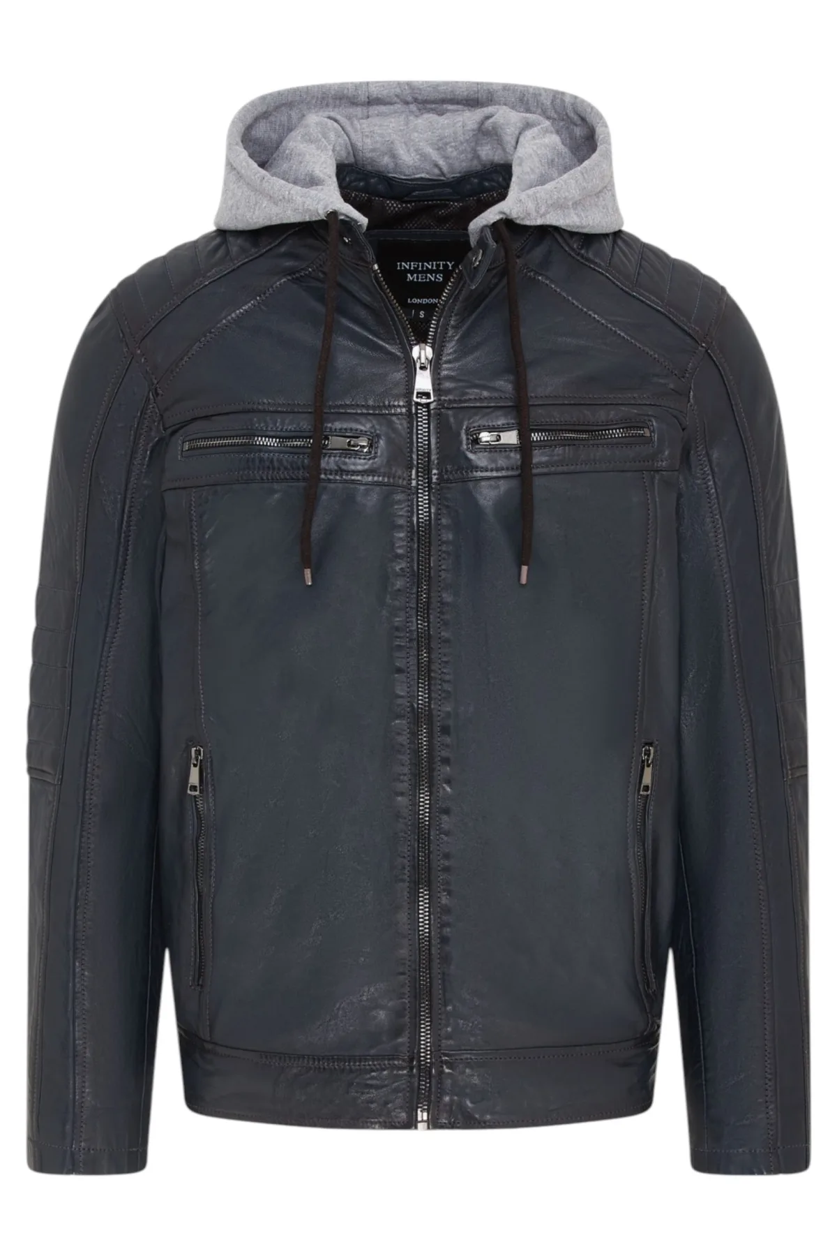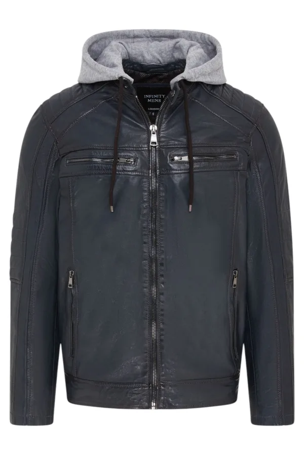 Heren blauwe capuchon biker lamsleren jas – Burten Prijzen