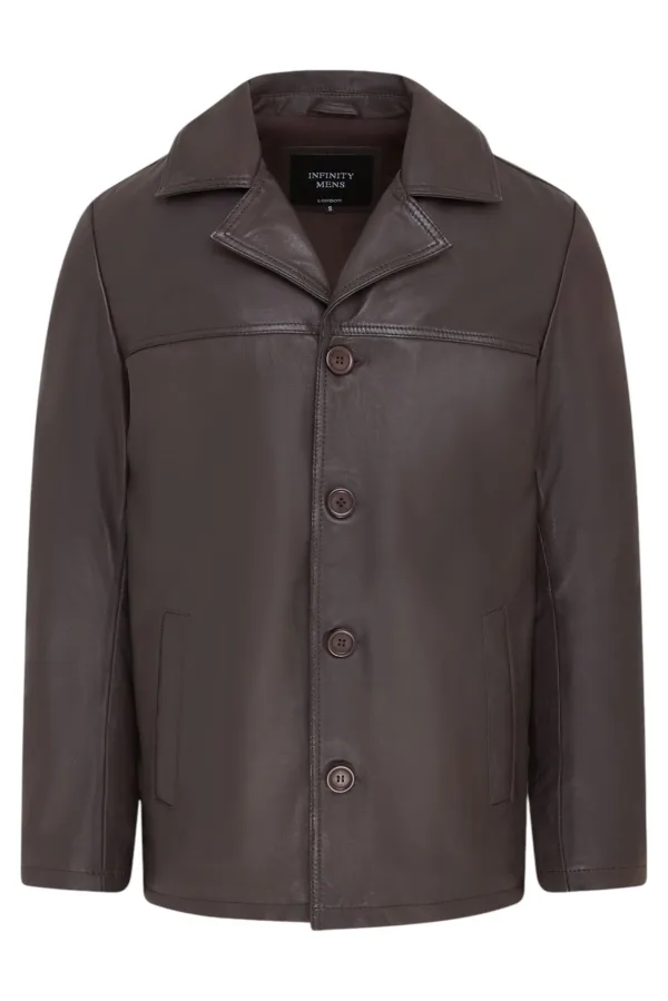 Heren bruin Italiaans leren blazerjack met 4 knopen – Loxton