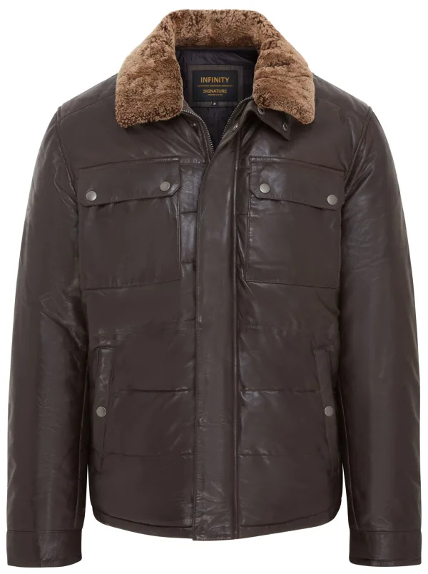 Heren Bruin Leren Puffer Gewatteerde Jas – Farsund Prijzen