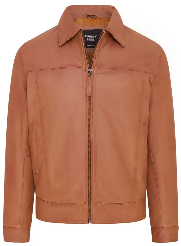 Heren bruin retro klassiek leren Harrington bikerjack – Drammen