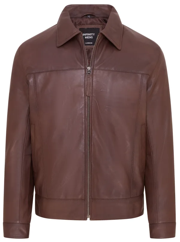 Heren Bruin Retro Klassiek Leren Harrington Bikerjack Drammen