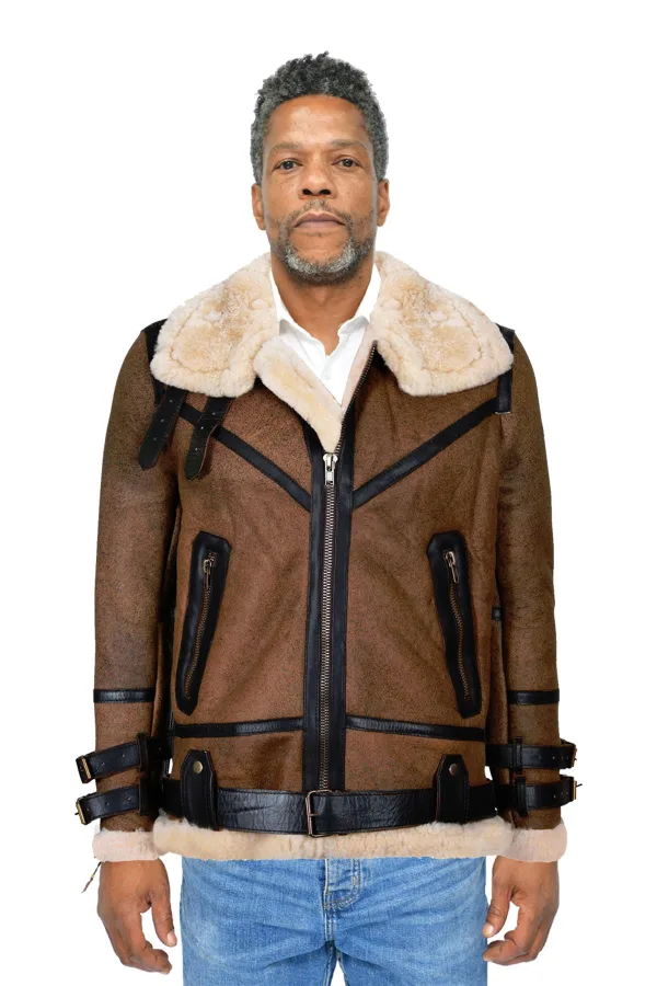Heren bruin vintage pilot B3 schapenvacht jas- KNOXVILLE