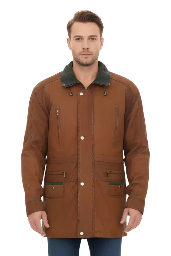 Heren bruine nubuck leren parka jas – Gatton Prijzen