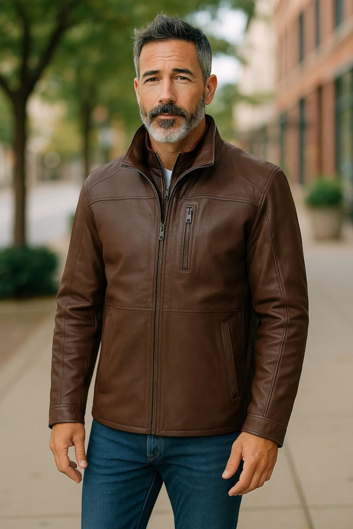 Heren Bruine Warme Halflange Leren Jas – Colac