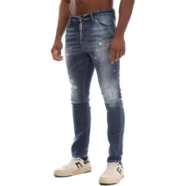 Heren DSquared2 Cool Guy Skinny-Fit Jeans in blauw.- Knoopsluiting.- Vijf zakken.- Riemlussen.- Distressed.- Dsquared badgeprint op de achterkant.- Skinny fit.- 99% Katoen 1% Elastane.- Ref: S74LB1585470