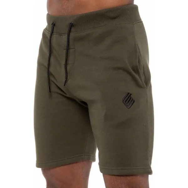 Enzo / Kruze Heren Regular Fit Fleece Shorts in Khaki, 50% Katoen, 50% Polyester, Elastische Taille met Koord, Enzo Logo Borduring op Been, 2 Pocket Ontwerp, Machine Wasbaar, Ideaal voor Herfst, Winter, Lente Seizoenen Draag Casual, Sport of Off leisure Gelegenheden.