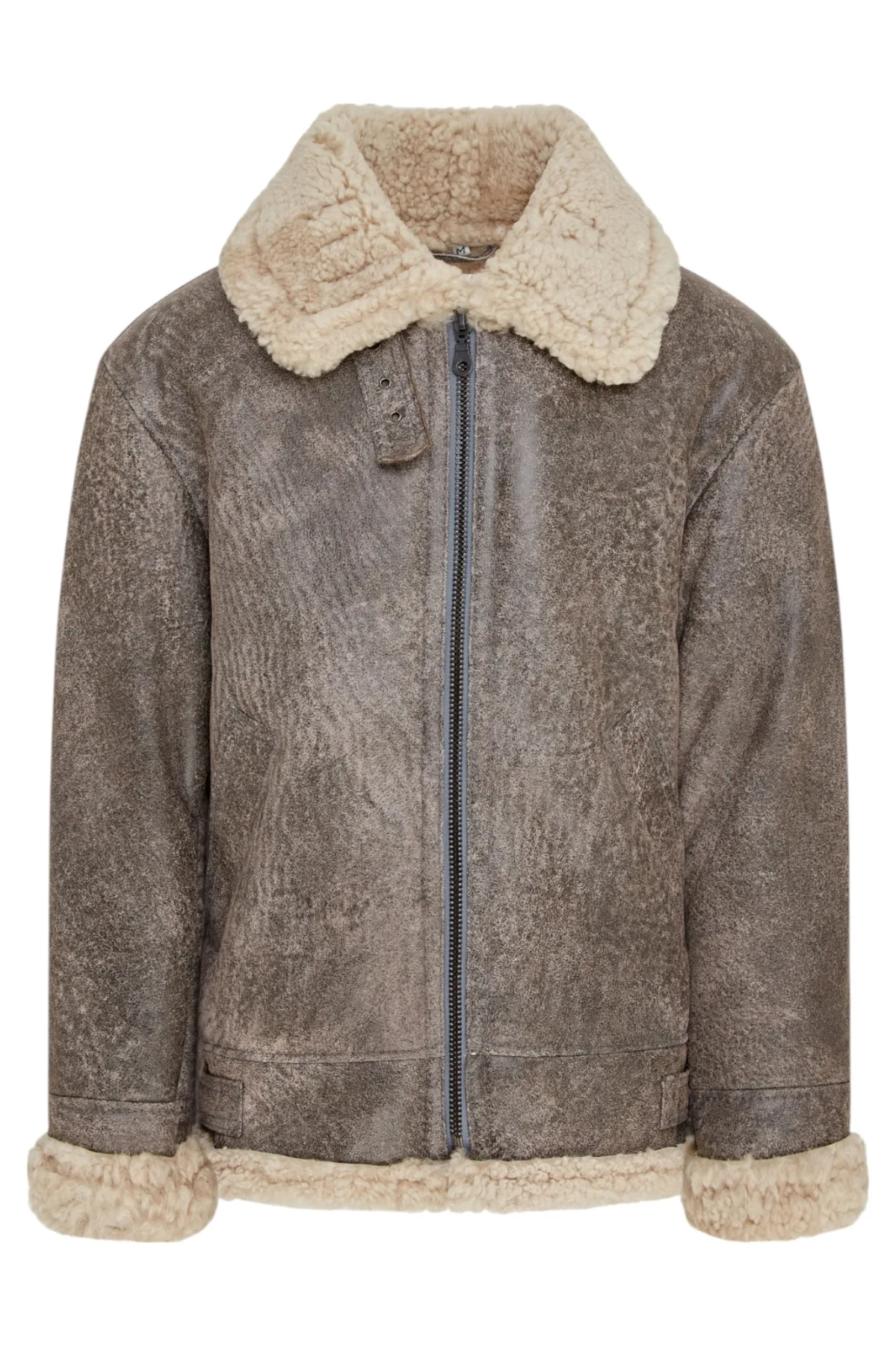 Heren grijs B3 WW2 schapenvacht leren pilotenjack – Houston