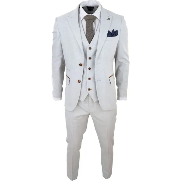 Heren grijs steen 3-delig tweed geruit pak Prijzen