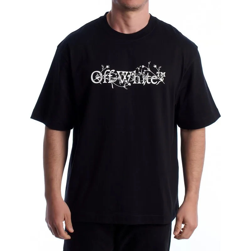 Heren T-shirt van Off-White met een strakke grafische esthetiek en een organisch geïnspireerd voorontwerp dat visuele identiteit biedt zonder het kledingstuk te overbelasten. Dit katoenen T-shirt heeft een zachte feel en goede ademend vermogen, geschikt voor dagelijks gebruik binnen herenkleding en afgestemd op de premium positionering van Off-White. Het heeft een gecentreerde frontprint met het Off-White logo, opnieuw geïnterpreteerd door middel van een lineaire compositie van takken en bloemen, wat zorgt voor een onderscheidend en herkenbaar visueel contrast. In tegenstelling tot de voorkant is de achterkant clean, zonder een hoofdfoto, wat een meer minimalistische en gebalanceerde benadering versterkt. De constructie biedt een comfortabele pasvorm met een rechte silhouette en een relaxed volume, in lijn met de hedendaagse stijl van stedelijk geïnspireerde T-shirts met korte mouwen. Het ontwerp van dit heren T-shirt met korte mouwen omvat een ronde hals met ribbelafwerking en een zachte drop shoulder, details die comfort bevorderen en helpen de structuur van het kledingstuk met gebruik te behouden. Een veelzijdig T-shirt binnen herenkleding, gemakkelijk te combineren met jeans, cargo broeken of casual outfits om een actuele look met het Off-White stempel te creëren. Samenstelling: 100% Katoen Verzorging: Maximale temperatuur 30ºC, wassen en spoelen met verminderde mechanische actie en een korte centrifugecyclus. Niet bleekmiddelen gebruiken. Niet in de droger doen. Strijken op lage temperatuur. Niet chemisch reinigen.