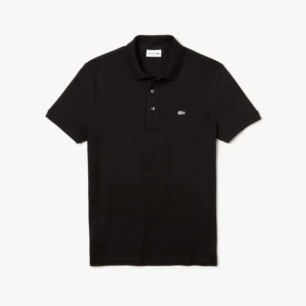 Heren Lacoste Slim-Fit Stretch Piqué Poloshirt in Zwart