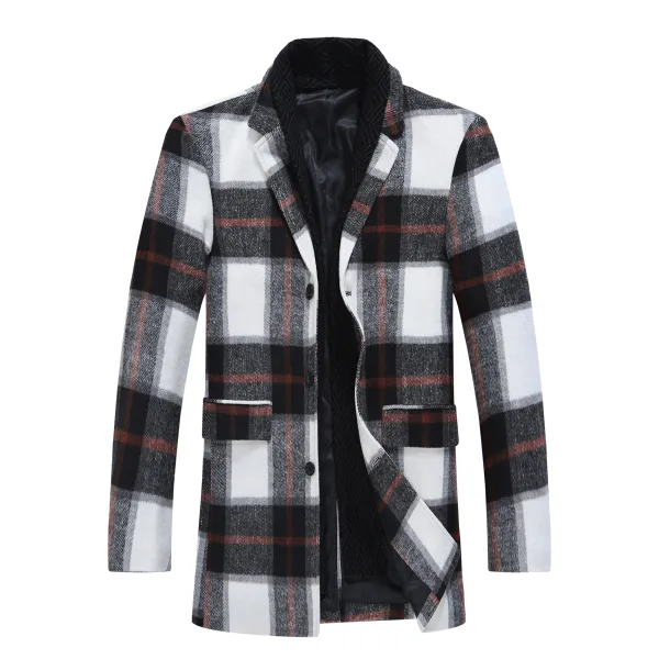 Heren lange slim fit geruite winter dikke jas met sjaalkraag...