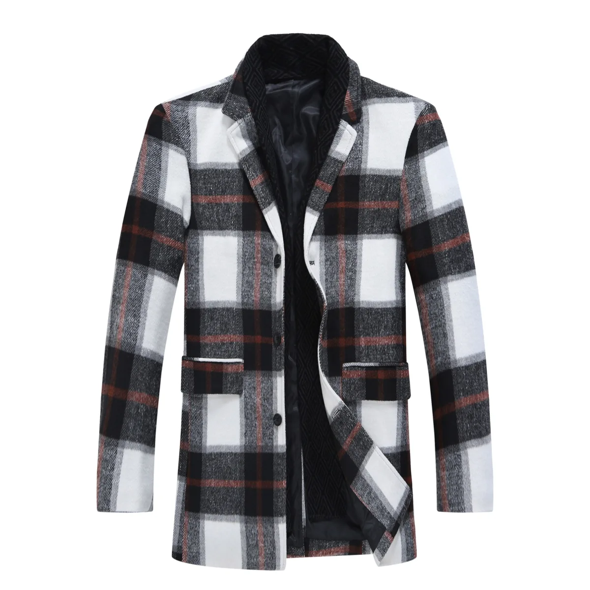 | Prijsgeschiedenis voor Heren lange slim fit geruite winter dikke jas met sjaalkraag rood | |
