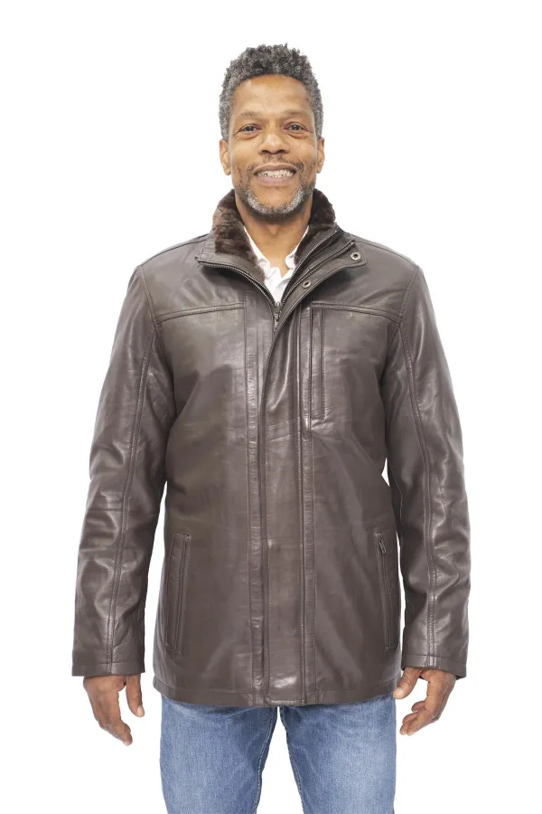 Deze jas is verlengd tot halverwege en afgewerkt met ons premium volnerf nappaleer voor een gladde uitstraling die wordt gecomplementeerd door de strakke esthetiek van de jas, bereikt door een overlappende gulp die de YKK-ritssluiting verbergt. De ritssluiting loopt door tot aan een hoge kraag met trechterhals, die is voorzien van een warme en comfortabele fleecelaag aan de binnenkant. De jas heeft twee subtiele ritszakken in de taille en een extra ritszak die verticaal doorloopt op de jasborst voor veilige opslag. De manchetten zijn ook verstelbaar gemaakt door middel van drukknopen. • 100% eersteklas ultrazacht nappaleer • Drie externe zakken met ritssluiting • Hoge kraag met trechterhals • Binnenkraag met fleecevoering voor extra laag comfort en isolatie