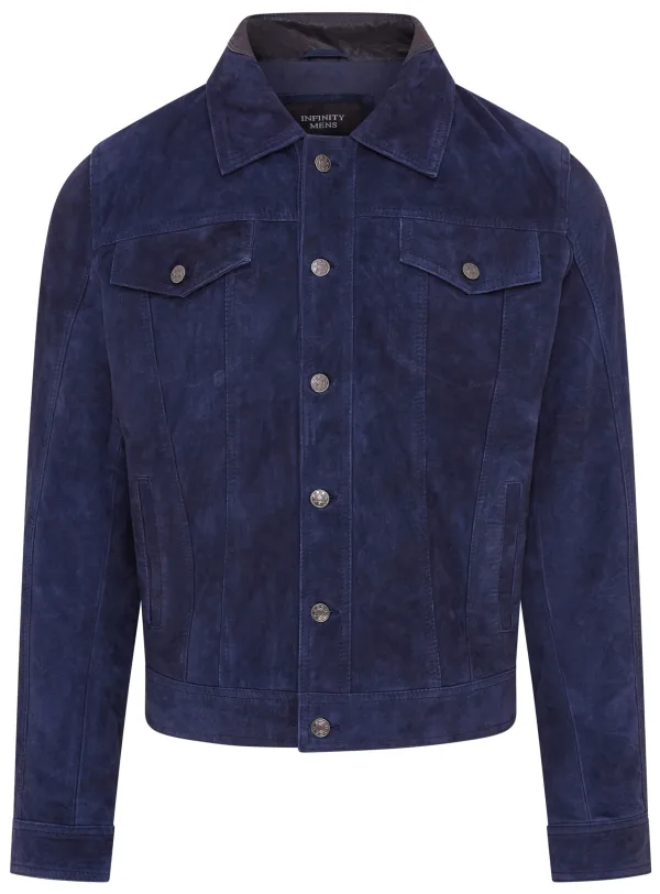 Heren marineblauwe geitensuède leren spijkerjas – Nurmes Prijzen