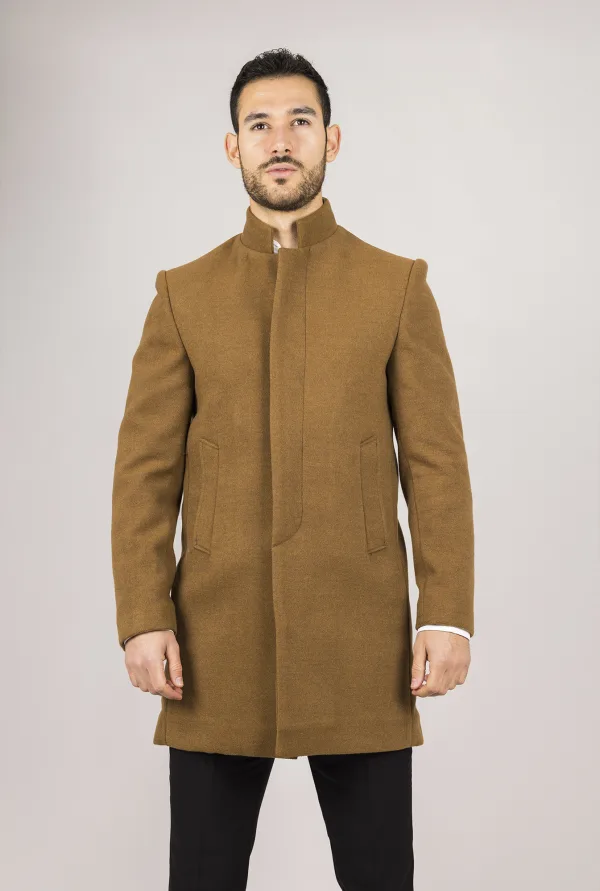 - Bij secretsales.nl kun je Heren overjas van wolmix met opstaande kraag in bruin kopen voor slechts €94,99