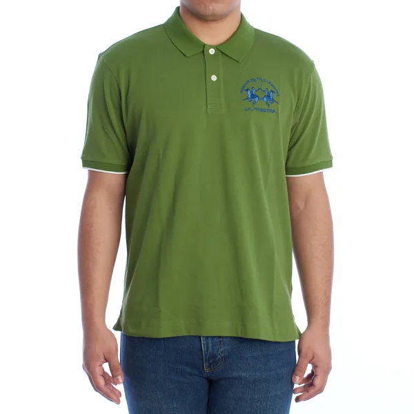 Heren polo met korte mouwen La Martina. Een klassiek stuk met een moderne twist, deze La Martina polo combineert comfort en exclusieve details. Ontworpen voor mannen die kwaliteit en een verfijnde casual stijl waarderen. Details: - Gemaakt van rekbare piqué stof, die flexibiliteit en ademend vermogen biedt voor meer comfort. - Polokraag met sluiting van twee knopen. - Kenmerkende La Martina borduring op de borst. - Decoratief label aan de achterzijde. - Korte mouwen met contrasterende afwerking. - Reguliere pasvorm die zorgt voor een comfortabele en flatterende fit. Dit polo-shirt van La Martina is een essentieel stuk voor de garderobe van iedere man. Het klassieke ontwerp, gecombineerd met moderne details, maakt het een veelzijdig en comfortabel kledingstuk, perfect om dagelijks stijlvol op te vallen. Samenstelling: 95% Katoen, 5% Elastaan Onderhoud: - Maximaal wassen op 30°C op een delicaat programma. - Geen bleekmiddelen of optische witmakers gebruiken. - Strijken op lage temperatuur, waarbij borduring vermeden wordt om beschadiging te voorkomen. - Geen droogmachine gebruiken.