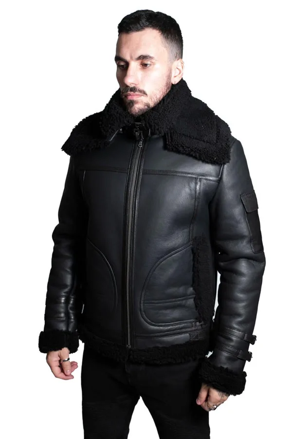Geniet van een tijdloze stijl met ons zwart leren herenjack van schapenvacht. Deze jas is gemaakt van echte dubbelzijdige schapenvacht en biedt ongeëvenaard comfort, warmte en duurzaamheid. De dubbele kraag voegt een onderscheidend tintje toe en verbetert het algehele ontwerp. Met twee handwarmerzakken in de taille kun je je handen behaaglijk houden tijdens koudere dagen. De jas heeft ook een stijlvolle zak op de mouw, wat een extra designelement toevoegt. Voor een persoonlijke pasvorm kunt u met de verstelbare riem bij de manchetten en taille de jas naar wens aanpassen. • Echte dubbelzijdige schapenvacht voor superieur comfort en duurzaamheid • Dubbele kraag voor een stijlvolle en unieke look • Twee handverwarmende zakken in de taille voor extra gemak • Zak op de mouw voor extra designdetail • Verstelbare riem bij de manchetten en taille voor een persoonlijke pasvorm.