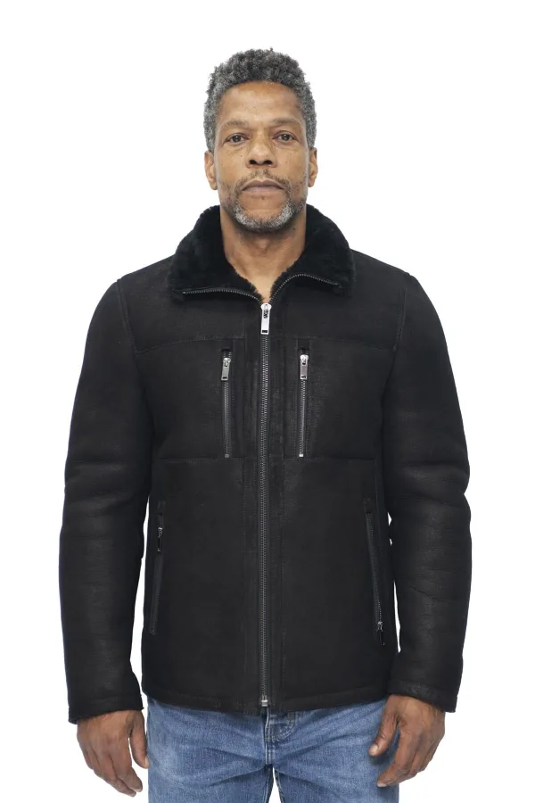 Heren schapenvacht biker bomberjack-Agboville