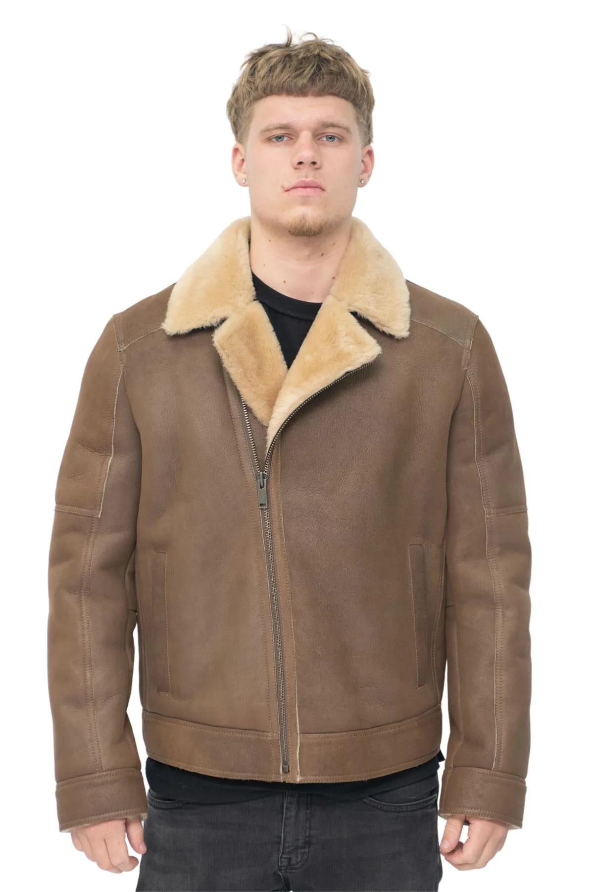 Ons bruin leren bikerjack voor heren van schapenvacht is gemaakt van de beste Spaanse merinohuiden en is een waar symbool van verfijning en stijl. Met zijn onberispelijke ontwerp en aandacht voor detail zal deze jas zeker een statement maken. Omarm het onberispelijke vakmanschap en breng je stijl naar een hoger niveau met ons schapenvachtbruine leren bikerjack voor heren. Deze jas is een perfecte mix van luxe, functionaliteit en een modieus ontwerp, waardoor het een must-have is voor de garderobe van elke moderne man. Dit zijn de belangrijkste ontwerpelementen: • Premium Spaanse merinohuiden zorgen voor de hoogste kwaliteit en een luxueus gevoel. • Twee handverwarmende zakken in de taille bieden zowel functionaliteit als een vleugje stijl. • Asymmetrische ritssluiting aan de voorkant voegt een moderne en edgy touch toe aan het klassieke bikerjack-ontwerp. • Klassieke reverskraag met inkeping straalt een tijdloze aantrekkingskracht uit en voegt een vleugje verfijning toe. • Veelzijdig en opvallend, dit jasje past moeiteloos bij elke outfit, of het nu een casual of geklede look is. Volledig schapenvacht Asymmetrische ritssluiting aan de voorkant Binnenwindbeschermer Fly front Comfort Fit