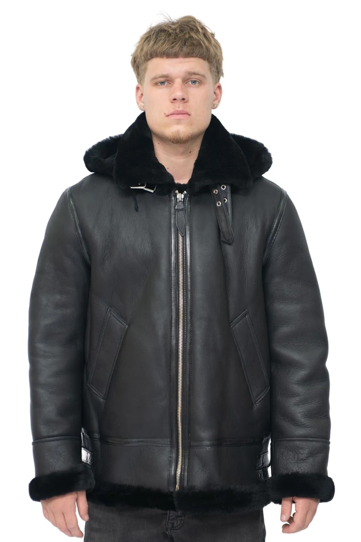Heren schapenvachtleer B3 Flying Jacket-Columbus met capuchon Prijzen