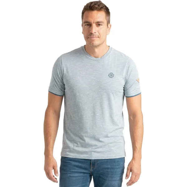 Heren T-shirt Privata gemaakt van microgestreept materiaal, een subtiele structuur die textuur, visuele diepte en een meer verfijnde afwerking toevoegt dan conventioneel effen stof. Het zachte, lichte en ademende gevoel maakt het een ideaal T-shirt met korte mouwen voor comfort de hele dag door. Het beschikt over een minimalistische grafische detail op de borst, discreet en elegant, wat zijn identiteit versterkt zonder het ontwerp te overweldigen. De kraag en mouwen hebben tonale afwerkingen, wat zorgt voor een schone en gepolijste afwerking die dit casual heren T-shirt kenmerkt. De reguliere pasvorm past comfortabel aan de silhouette en biedt bewegingsvrijheid en een gebalanceerde fit. Gemakkelijk te combineren met jeans, chinos of shorts, het is perfect voor het creëren van moderne en veelzijdige casual looks voor heren. Een basis heren T-shirt dat opvalt door zijn textuur, veelzijdigheid en eigentijdse stijl, een essentieel item in de herenmode. Samenstelling: 50% Katoen, 50% Polyester Onderhoud: Wassen op maximaal 30ºC. Strijken op een lage temperatuur. Niet in de droger. Geen bleekmiddel gebruiken. Niet geschikt voor stomerij.