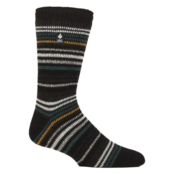 Heat Holders Mannen Twist Sokken: Laat de winterkou je niet naar beneden halen. Laag voor laag met deze warme Ultimate Thermal Sokken voor mannen van Heat Holders. Wetenschappelijk getest als de warmste sokken die er zijn, zijn Heat Holders sokken vervaardigd met UK GEPATENTEERDE breitechnologie. Dit unieke productieproces, samen met het innovatieve Japanse thermisch garen van HEAT HOLDERS®, zorgt ervoor dat maximale warmte dicht bij de huid wordt gehouden. Met een hoge tog-waarde van 2.3 TOG, houden deze sokken je voeten langer warm. Houd je voeten warm met de geavanceerde Japanse thermische garen die hoge prestaties in isolatie tegen de kou biedt. Hun deskundige borsteling maximaliseert de hoeveelheid warme lucht die in elke sok wordt vastgehouden voor onverslaanbare warmte en comfort de hele dag door. De ultieme thermische sokken voor casual dagelijks gebruik zijn aangekomen met deze kleurrijke, gestreepte en dikke sokken. Verkrijgbaar in verschillende kleuren en stijlen, kies uit gestreepte patronen of kleurrijke teen- en hielontwerpen om aan je modebehoeften te voldoen! Ze zijn beschikbaar in mannenmaat 6-11 VK, 39-45 EU, 7-12 VS. Extra productdetails: - Mannen Twist Sokken - Officiële Heat Holders - Heat Holders Garen - Heat Holders Lussen - Heat Holders Borsteling - Dikke Thermische Voering - Kleurrijke Strepen en Ontwerpen - Hoge Tog Waarde - Opgevulde Loop