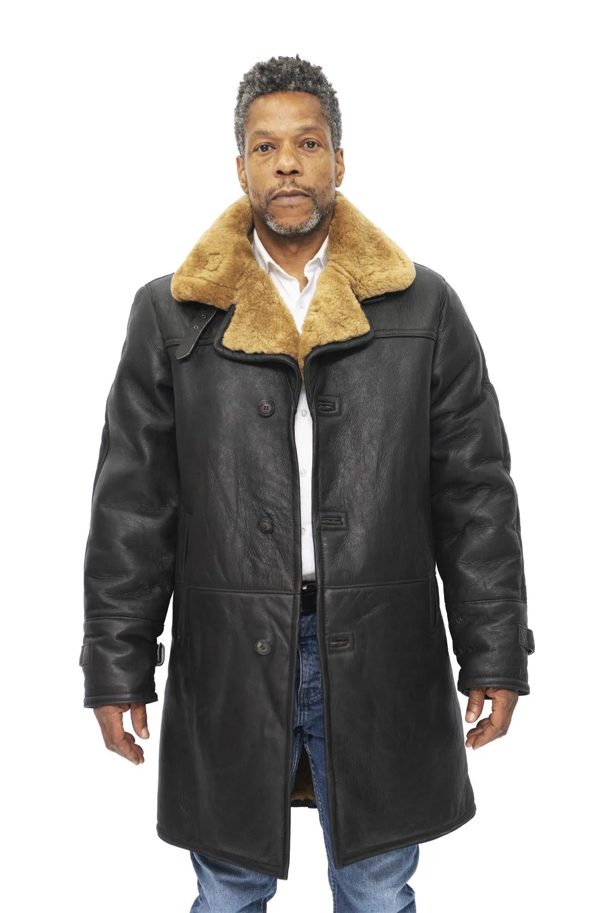 Deze jas heeft een ingetogen look die traditioneel is voor het Crombie-ontwerp, en voegt een verfijning toe aan dit stuk dat wordt gecomplementeerd door de verzegelde lederen buitenafwerking die een uitgesproken strakke uitstraling heeft. Deze jas heeft een geïsoleerde wollen voering en is verlengd in de lengte, zodat je hem warm kunt dragen en comfortabel blijft tijdens de koudste dagen. Voor een extra elegante touch hebben we de kraag met inkeping in een royale wijde positie verspreid om de gemberkleurige voering te laten zien. Voor extra functionaliteit hebben we twee steekzakken en verstelbare manchetten met gesp toegevoegd. • Gemaakt van hoogwaardige dubbelzijdige schapenvacht • Dikke voering van schapenvacht staat bekend om zijn warmte en comfort • Inclusief twee schuine taillezakken en brede kraag met inkepingen • Voorzien van een traditionele sluiting met drie knopen