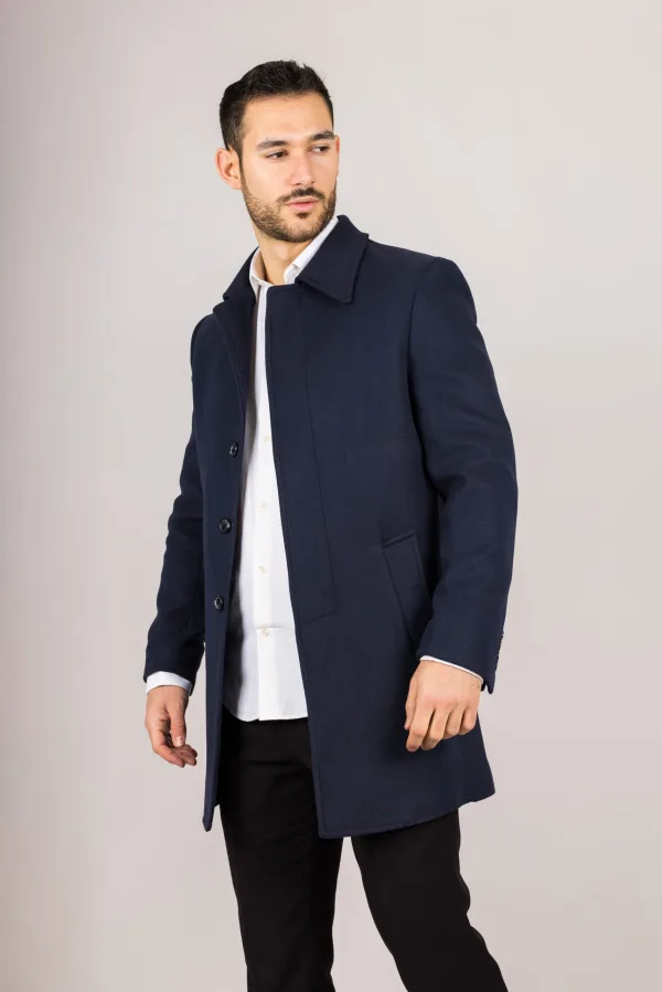 - Bij secretsales.nl kun je Heren wolmix klassieke kraag marineblauwe overjas kopen voor slechts €94,99
