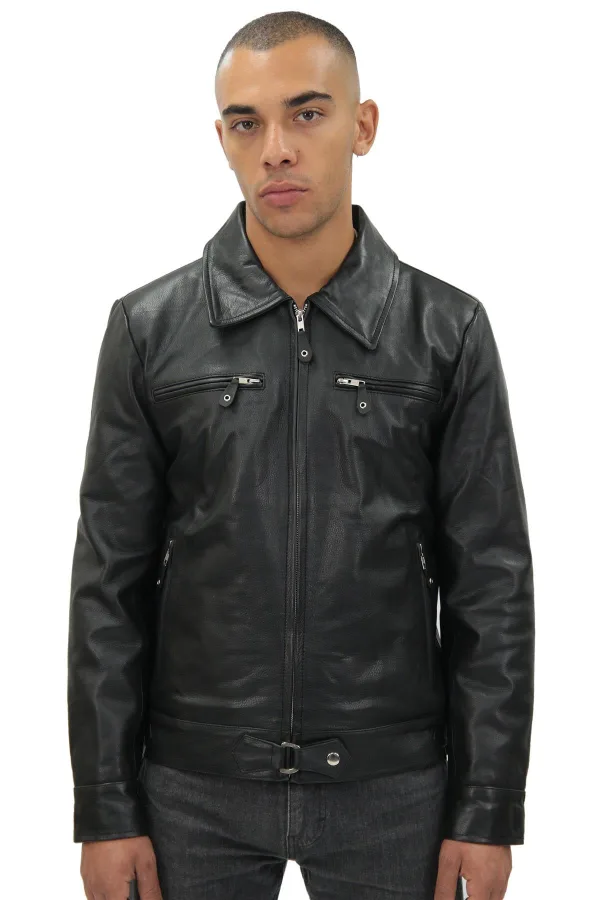 Onze jas is gemaakt van echte wasachtige koeienhuid en compleet met een klassieke overhemdkraag. Het is een kwaliteitsstuk dat een unieke stijl uitstraalt. Deze jas is korter van lengte en is compleet met een zoomriempaneel om de gewenste pasvorm te bereiken en meer comfort te bereiken. De voorkant van de jas heeft slechts twee zakken met ritssluiting op de borst, zodat de jas een ingetogen look blijft, terwijl er nog twee zakken subtiel aan de zijkanten zijn geplaatst voor extra functionaliteit. • Echte koeienhuid van hoge kwaliteit • Vier externe zakken • Gecentreerde YKK-ritssluiting met tabs • Klassieke kraag in overhemdstijl • Zakken geïntegreerd in de voering van de jas • Ritsmanchetten en zoomriem voor aanpassing aan persoonlijke voorkeur
