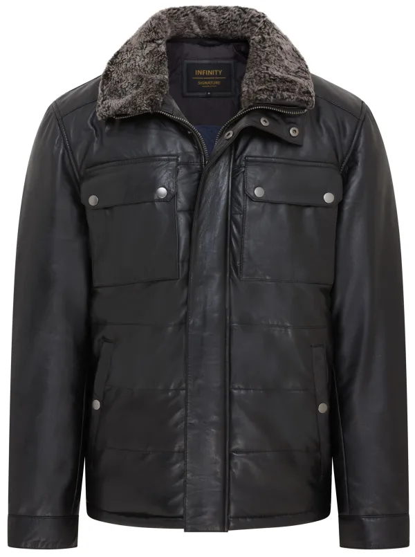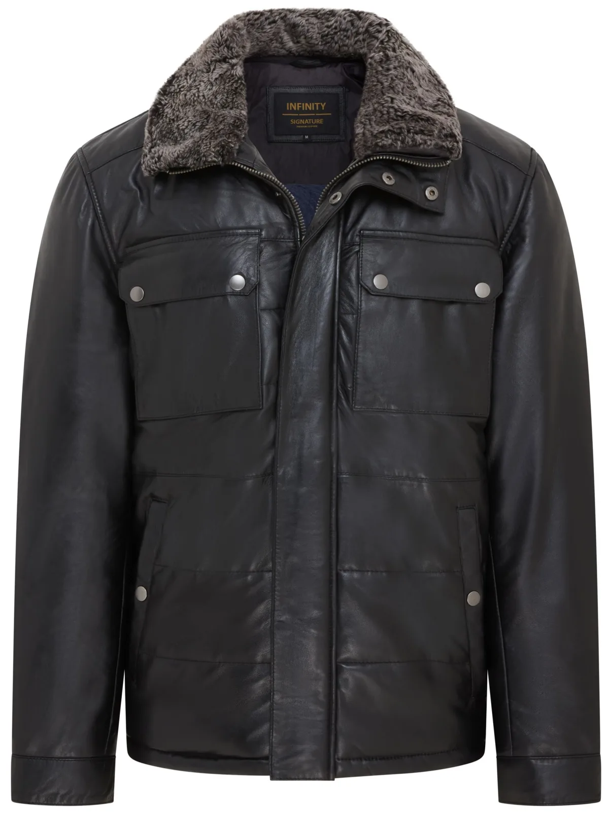 Heren zwarte leren gewatteerde jas – Farsund Prijzen