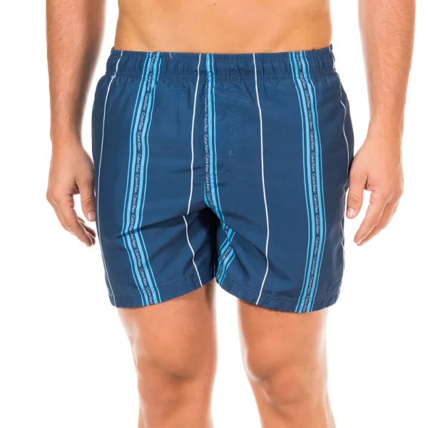 Calvin Klein herenbadpak. Opdruk van de merknaam achtereenvolgens in het hele ontwerp. Elastische en verstelbare tailleband met veters. Twee open zakken met mesh voering, binnenin. Zak met klep en klittenbandsluiting aan de zijkant van de rug. Naden in toon zichtbaar. Samenstelling: 100% polyester Onderhoud: - Wassen op max. temperatuur. 30º. - Geen bleekmiddel gebruiken. - Chemisch reinigen toegestaan. - Niet strijken. - Geen droger gebruiken.