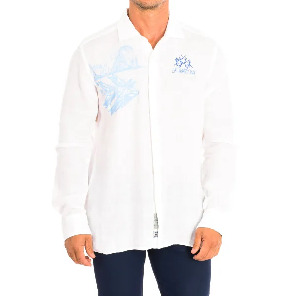 La Martina shirt met lange mouwen. Witte kleur Klassieke snit met een normale pasvorm, waardoor het geschikt is voor elk silhouet. Kraag met kapel. Knoopsluiting aan de voorkant. Geborduurd logo op de voorkant. Grafische merkopdruk. Manchetten met knoopsluiting. Naden in toon zichtbaar. Samenstelling: 100% linnen. - Wassen op maximaal 40ºC. - Strijken op gemiddelde temperatuur, max. 110ºC. - Horizontaal drogen op lage temperatuur. - Laat geen bleekmiddel toe. Samenstelling: 100% linnen. Onderhoud: - Wassen op maximaal 40ºC. - Strijken op gemiddelde temperatuur, max. 110ºC. - Horizontaal drogen op lage temperatuur. - Verdraagt geen bleekmiddel.