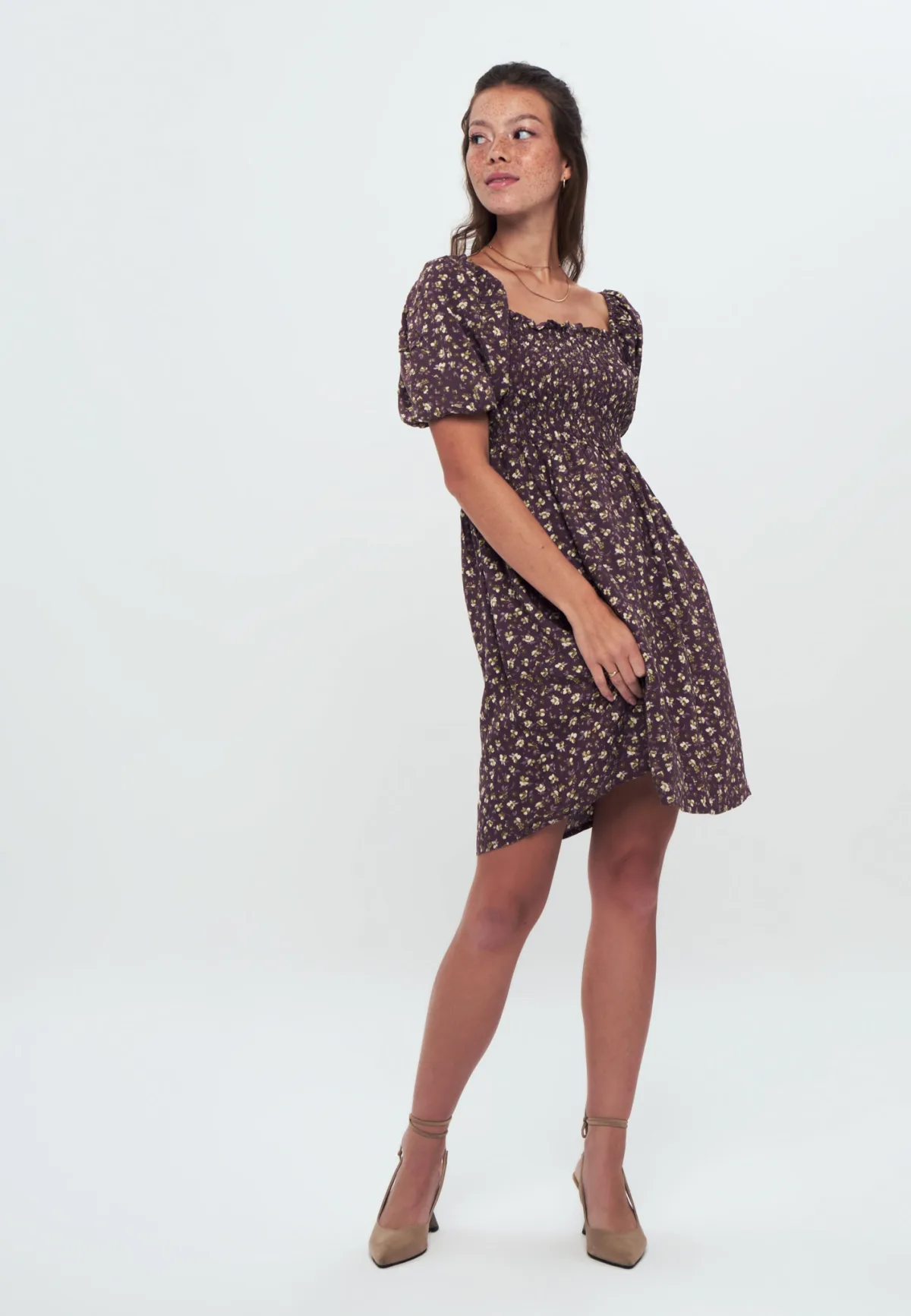 Herita Gedrukte smokjurk – Bruin Prijzen