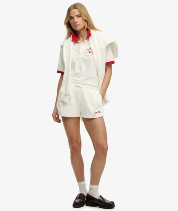 Relaxed pasvorm - de klassieke Superdry pasvorm. Niet te smal, niet te ruim, precies goed. Kies je normale maat Middelhoge taille Elastische tailleband met trekkoord Twee zakken Geborduurd logo op het been Onze Heritage Terry Shorts brengen de nostalgische retro racer stijl tot leven, met een combinatie van zachte badstof en een vintage-geïnspireerd logo voor een ontspannen, retro gevoel. Of je deze shorts nu draagt om te ontspannen of voor je relaxte weekendplannen, ze zijn perfect voor elke ge