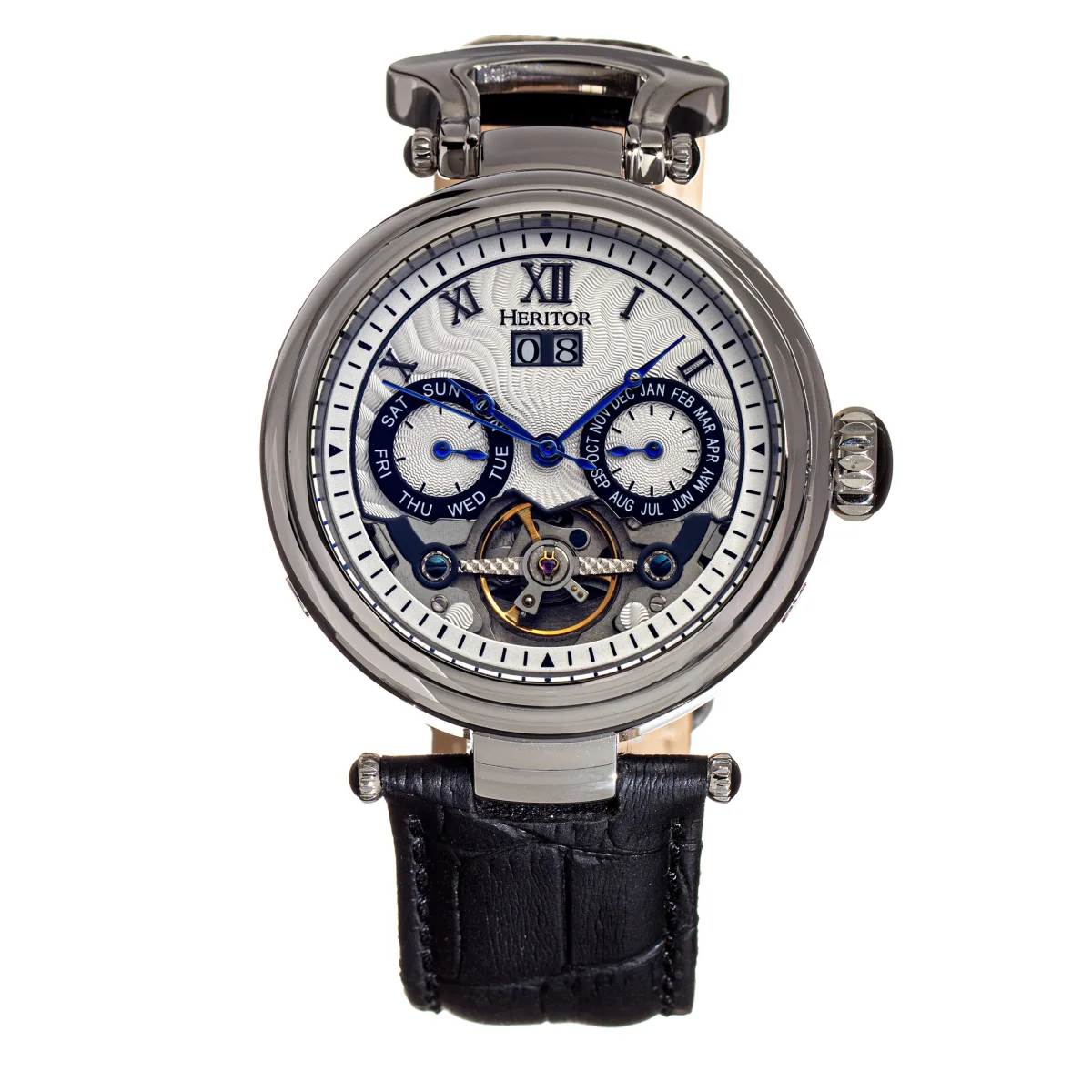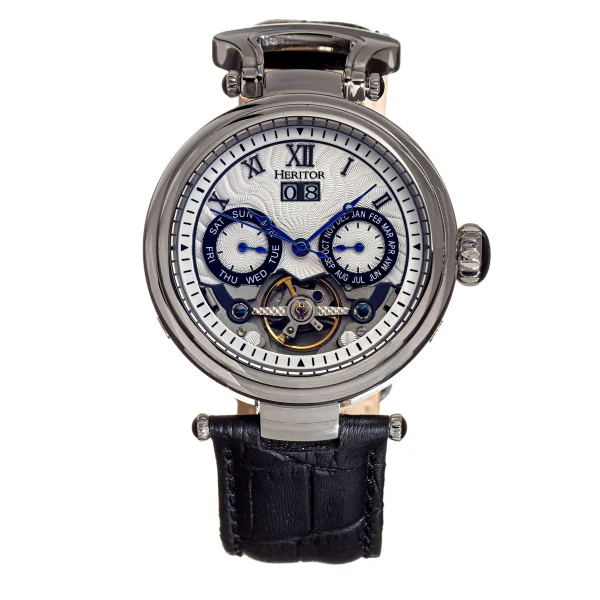 Heritor Automatic Ganzi semi-skelet lederen band horloge