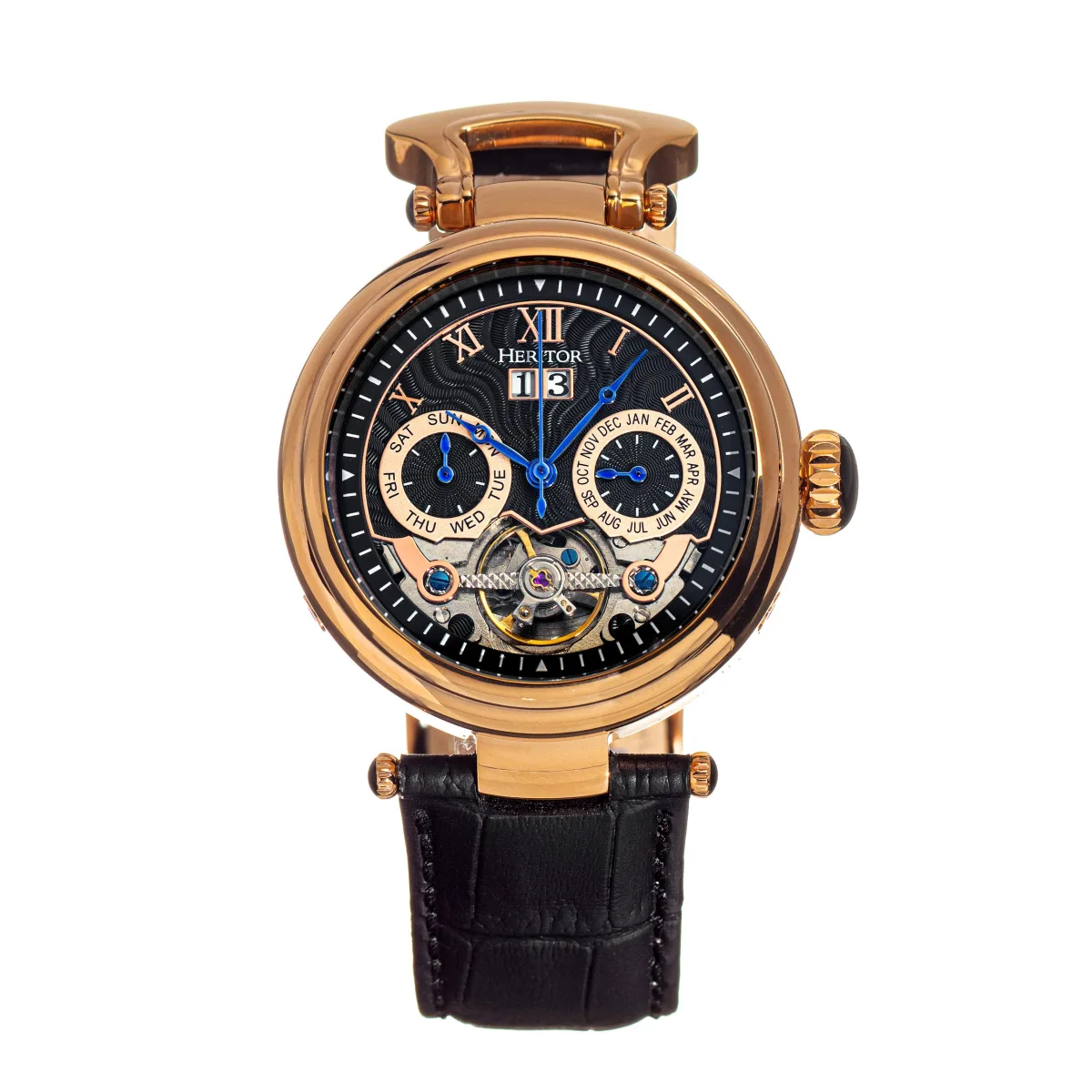 Heritor Automatic Ganzi semi-skelet lederen band horloge