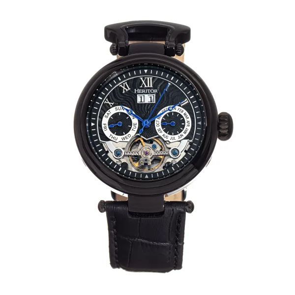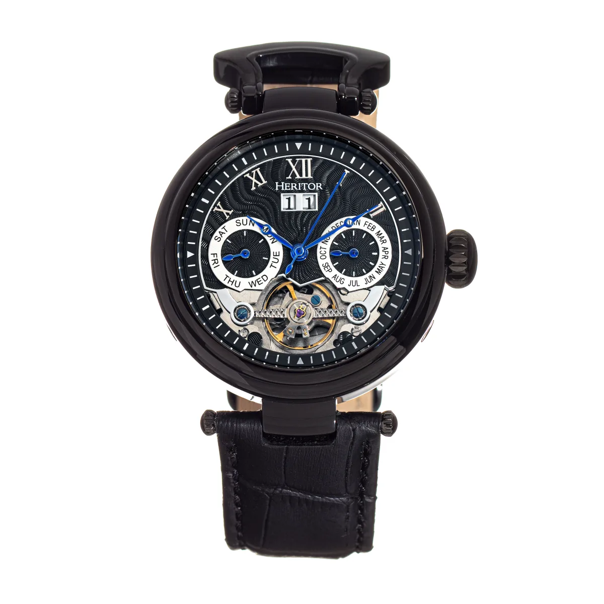 Heritor Automatic Ganzi semi-skelet lederen band horloge
