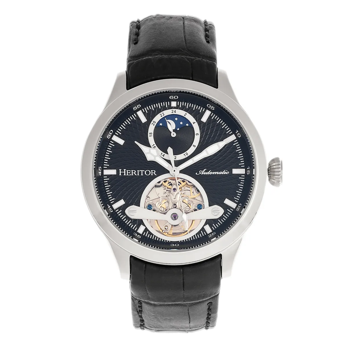 Heritor automatisch Gregory semi-skelet lederen band horloge